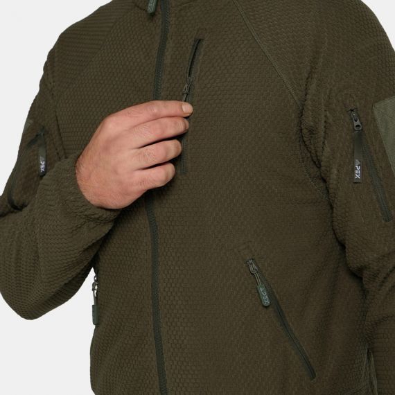 Флисовая кофта SANFORD идеальный спутник для охоты, рыбалки, походов, городских приключений и использования в тактических задачах. Созданная из высокотехнологичного полиэстера, она сочетает максимальное тепло, легкость и износостойкость, сохраняя свободу движений даже в экстремальных условиях. Сетчатая подкладка обеспечивает дополнительный комфорт кожи. Особенности: * воротник-стойка, * молнии YKK® , * на рукавах карманы с Velcro панелью, * два нижних боковых кармана с застежкой-молнией, * нагрудный карман с отверстием под наушники, * эластичные манжеты, * легкий флис: греет без объема, легко сворачивается в рюкзак, * активная терморегуляция: материал отводит влагу при нагрузке и сохраняет тепло в покое, * анатомический крой: не стесняет движений благодаря эластану в отделке, * устойчивость к износу: выдерживает частые стирки, не теряя формы и цвета. Идеально для: • туризма, • работ на открытом воздухе, • повседневной носки осенью/зимой, • тактических задач, • комплектации в качестве среднего слоя. Материалы: Основная ткань: 100% полиэстер, плотность 310г/м2. Отделка: 95% полиэстер, 5% эластан. Сетка:100% полиэстер. Технологии: Молнии YKK.